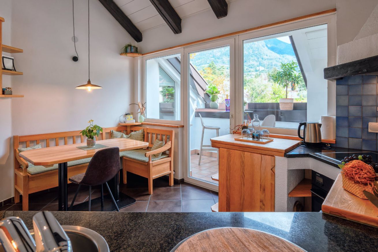 L'appartamento Lichtenegg si trova a Merano, all'ultimo piano di un piccolo condominio d'epoca, nello splendido quartiere di Maia Alta, conosciuto come zona delle ville.
